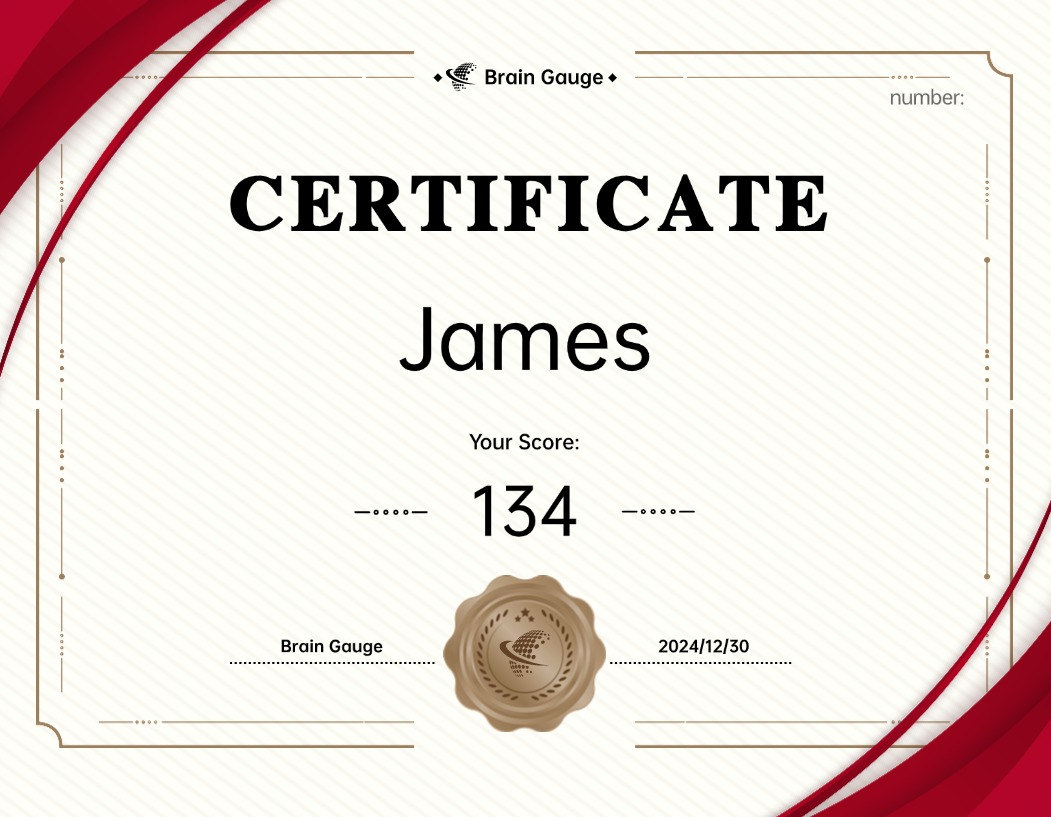 certificate with your IQ Score. Show to family, friends or anyone your capacity. Plus with